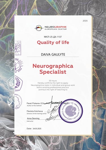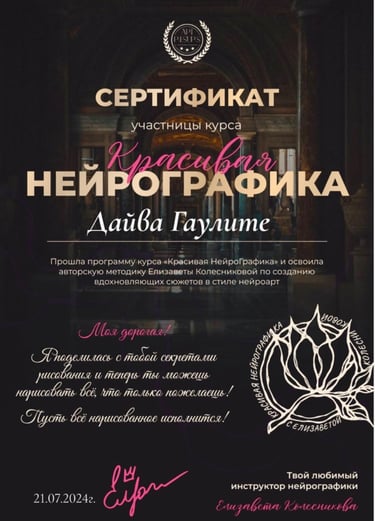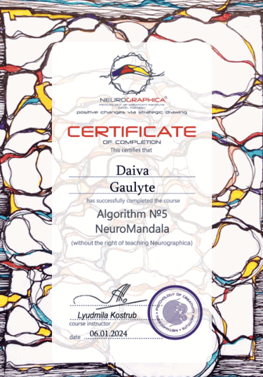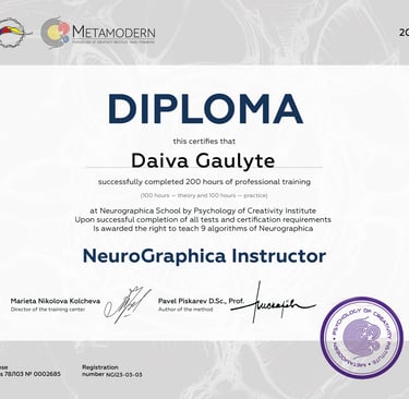 I’m a certified Neurographica instructor and Supervisor for Psychology of Creativity Institute.