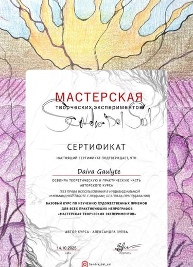 Your sessions helped me unlock emotions I couldn't reach before; drawing with guidance brought calm I truly needed. Thank you, Daiva